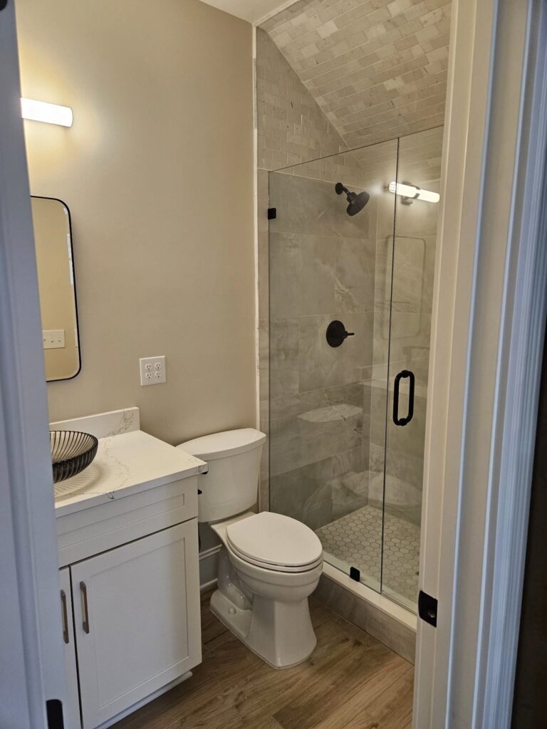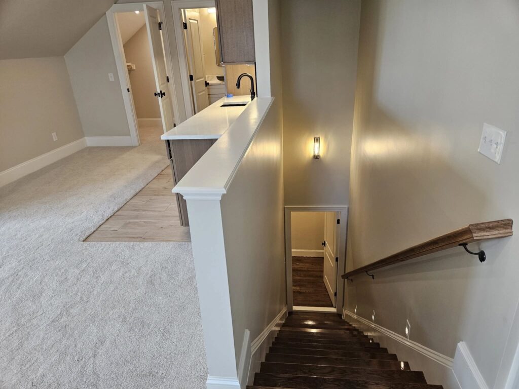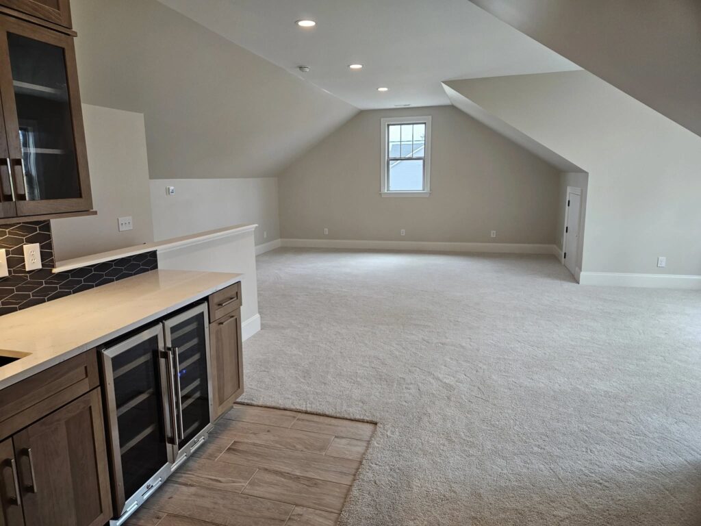 Before and after pics of a 3rd floor attic renovation in Stillwater subdivision in Apex. We added a large dormer, kitchenette, full bathroom and bonus/entertainment room.