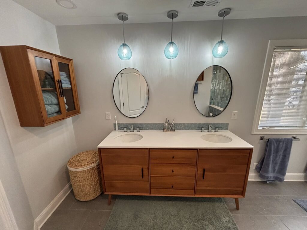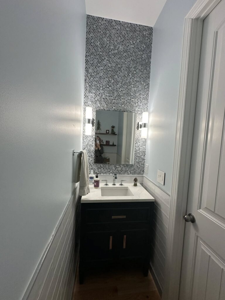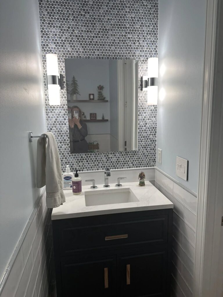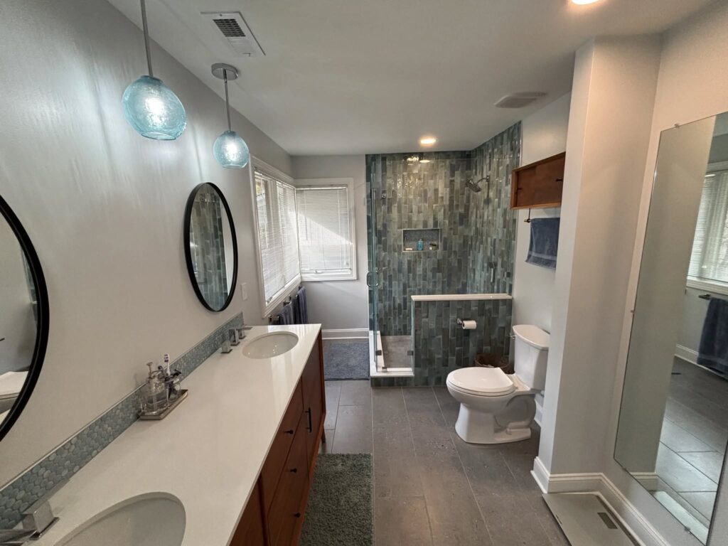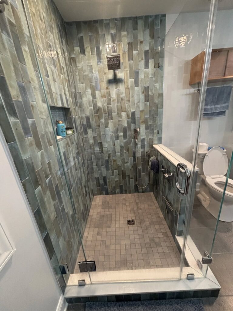 Before and after pics of a bathroom renovation spring 2025 in Apex.