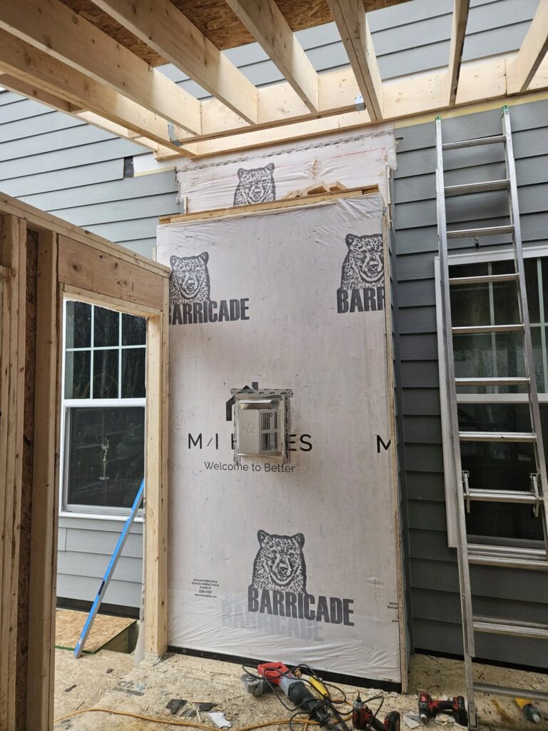 We built a sunroom with tile floor and brick tv wall. Ez breeze windows and made the existing house wall a new trim detail to make the room look more finished. 16’x16′